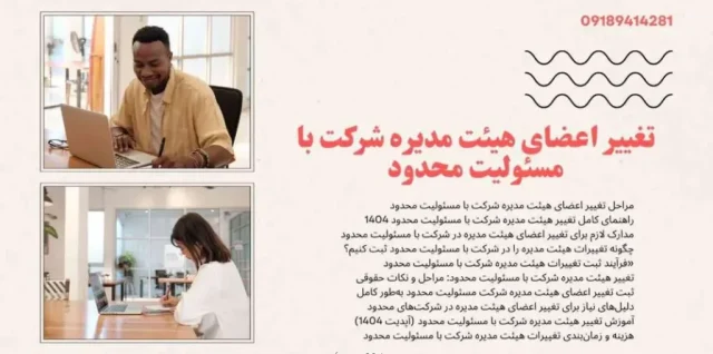تغییر اعضای هیئت مدیره شرکت با مسئولیت محدود (آپدیت 1404) با مراحل کامل و قانونی تغییر اعضای هیئت مدیره شرکت با مسئولیت محدود آشنا شوید. از مدارک لازم تا ثبت نهایی، همه چیز را در این راهنمای کاربردی بخوانید و ادامه مطلب راهنمای کامل تغییر هیئت مدیره شرکت با مسئولیت محدود ۱۴۰۴